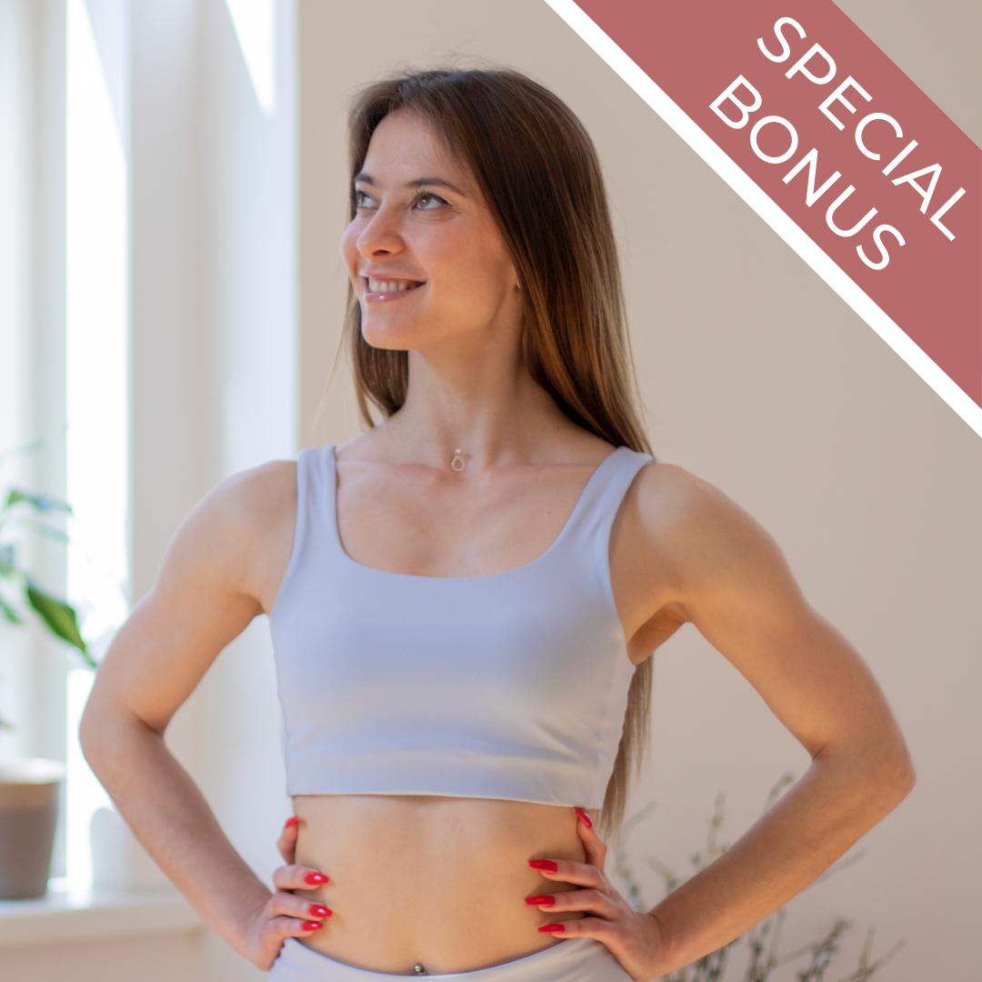 With this bonus you will correct your posture, prevent pain and injuries, create a confident look that indicates leadership and form a sensual line from the base of your spine to the crown of your head.